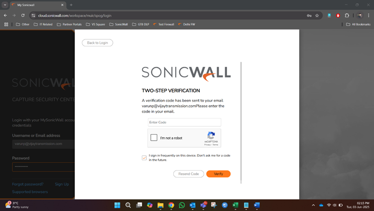 Enter the OTP received to the registered email ID: