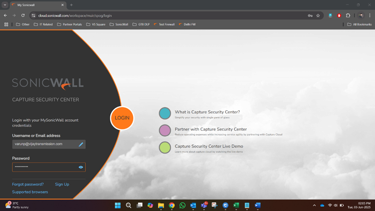 Go to this link and enter MySonicWall credentials: